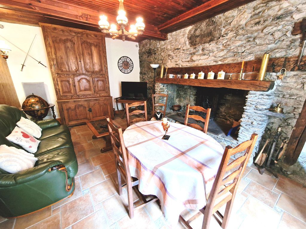 1) MAISON EN PIERRES - rdc: séjour avec cheminée +1 cuisine - grande terrasse donnant sur l'arrière sur grand terrain / verger